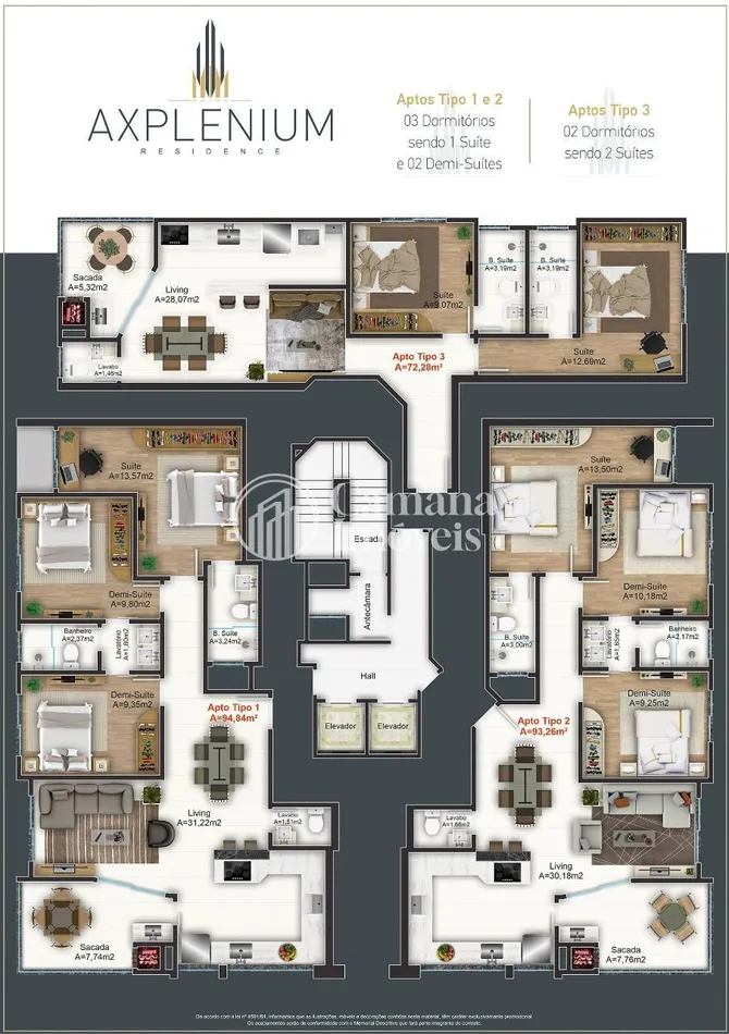 Apartamentos Tipo 1 com aprox. 95,00m² de Área Privativa