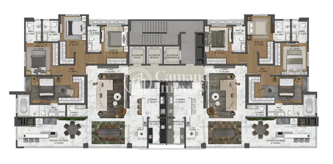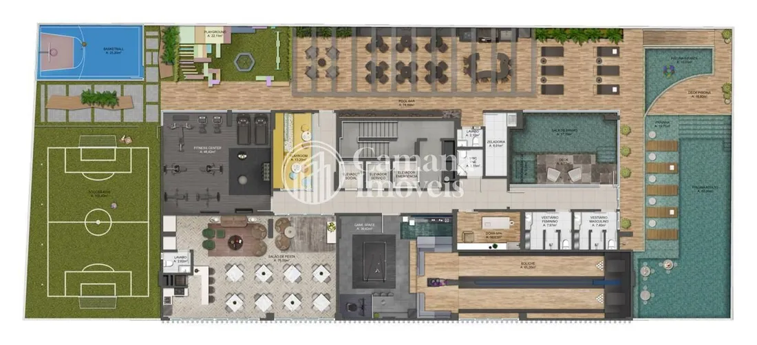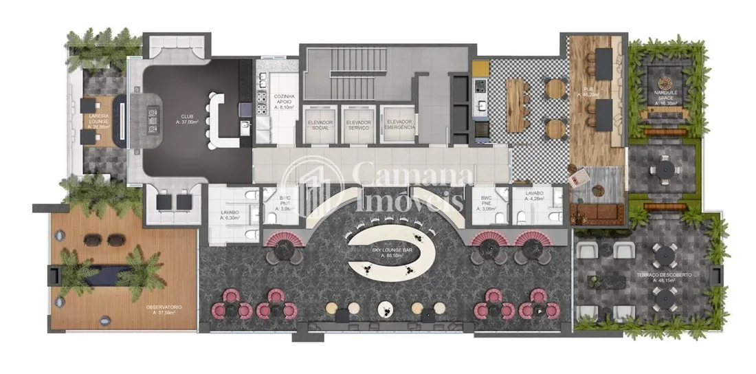 1200m² Área de lazer distribuidas 06° e 28° andar (cobertura)